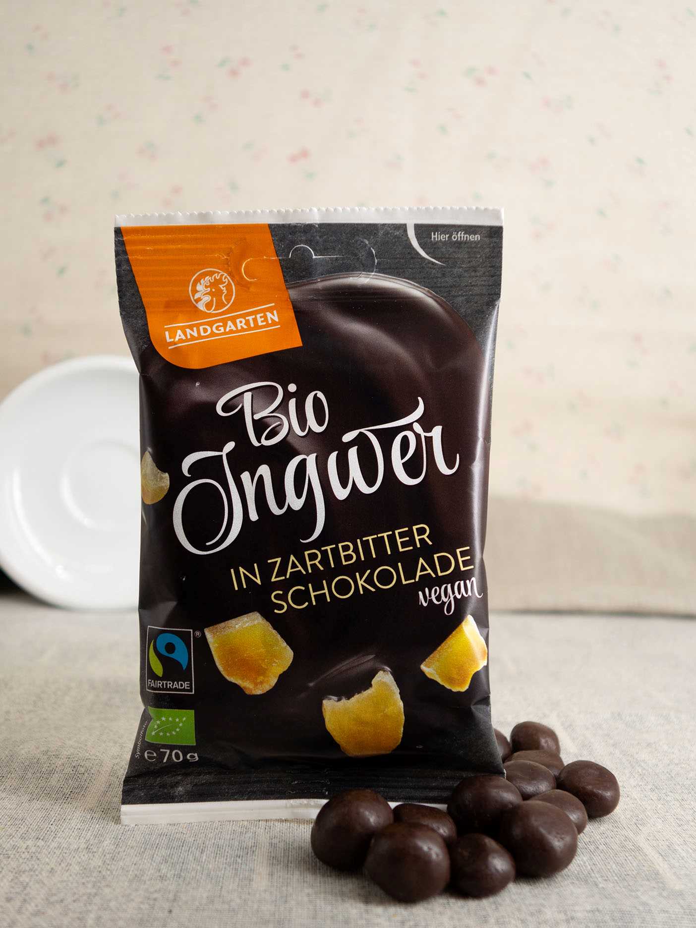 Kandierte Ingwerstücke umhüllt von Zartbitter-Schokolade in bester Bio-Qualität